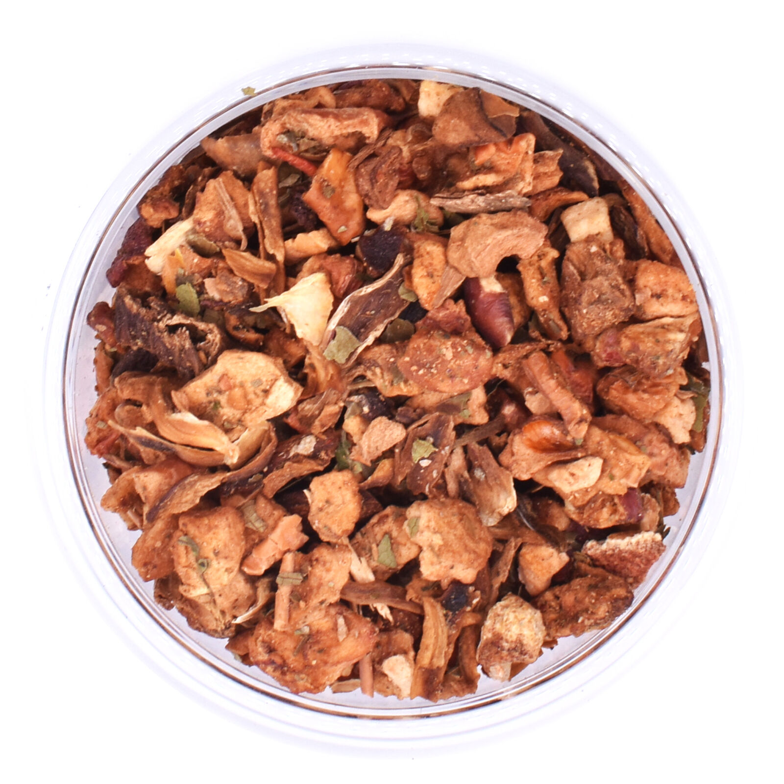 Összetétel: almadarabok, fahéj darabok, hibiszkuszvirág, mandula csipkebogyóhéj, bodza, ribizli, fekete ribizli.