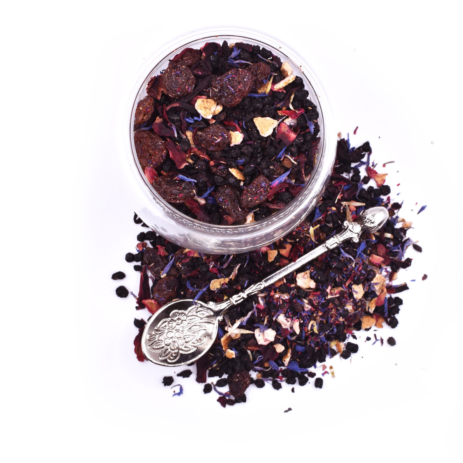Összetétel: bodza, hibiszkuszvirág, narancshéj, búzavirág, mazsola, rózsaszirmok, áfonya, szilva