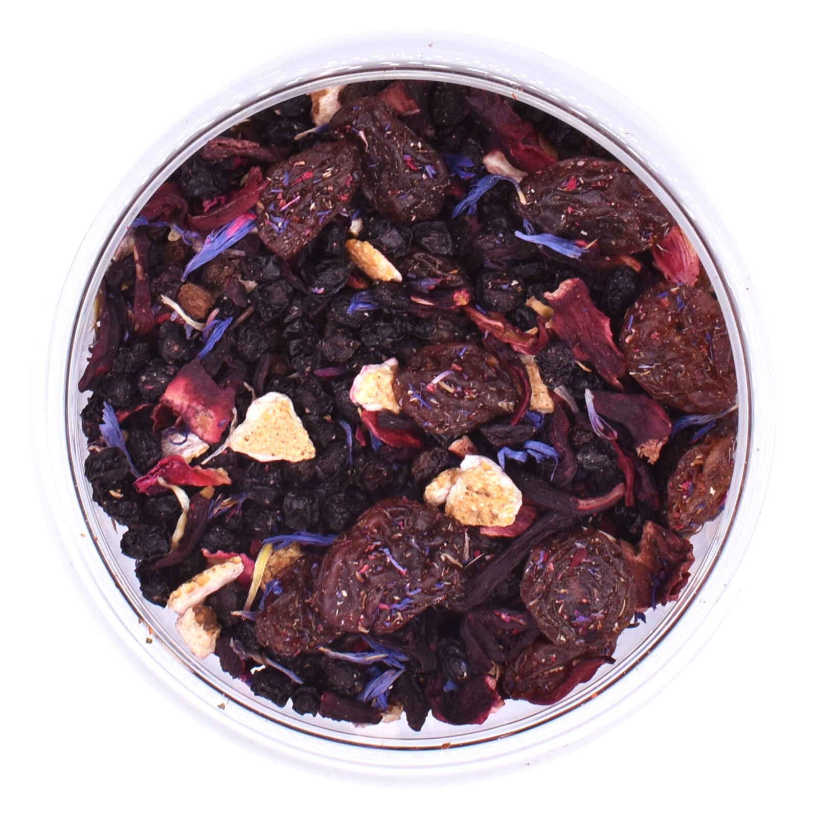 A virágszirmokkal, szilvával, szőlővel, áfonyával és narancshéjjal gazdagított teakeverék egzotikus utazásra hív – miközben minden összetevője jótékony hatással van a szervezetre. A bodza, hibiszkusz, rózsa és búzavirág nemcsak díszítik, hanem gyógyhatásukkal is emelik a tea értékét.