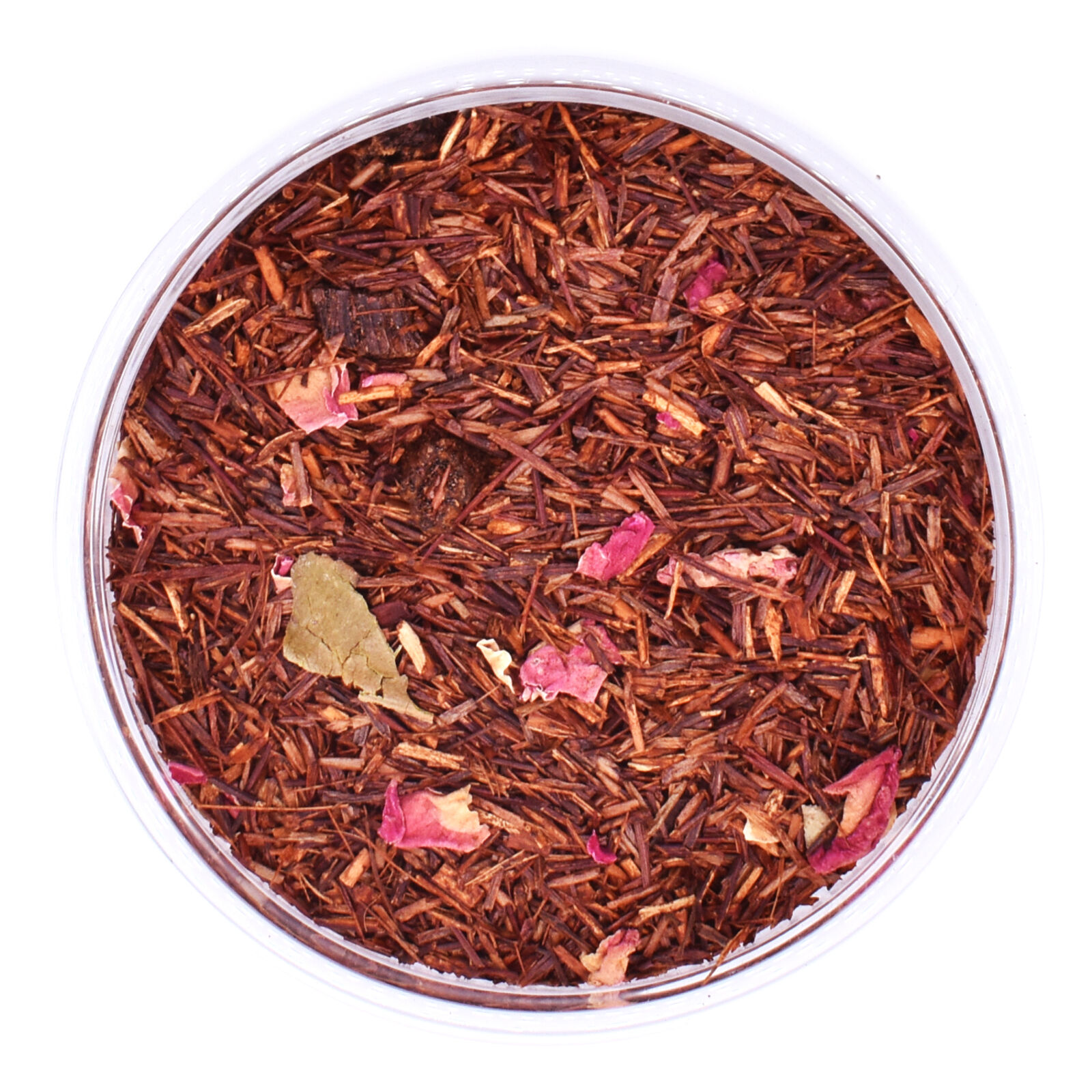 Összetétel: redbush tea, fagyasztva szárított egész málnadarabok, rózsaszirmok, vaníliadarabok.